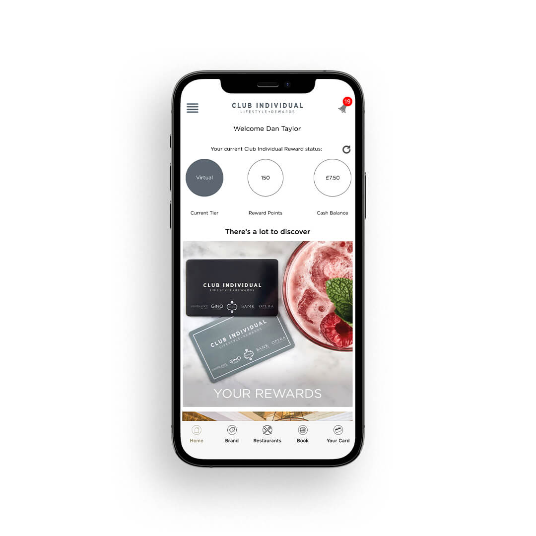Club Individual, the club was originally built by our CEO and founder, Adam Purslow, when he was CTO at Individual Restaurants. To enhance the member experience, we developed a customer facing app for Club Individual, as a new way to deliver their loyalty platform.
