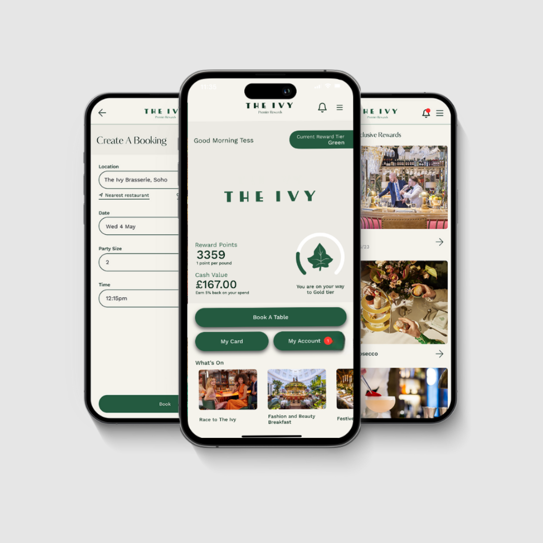 The Ivy Collection is a renowned group of over 40 restaurants spanning the UK and Ireland, who are renowned for their amazing food and vibrant atmosphere. In an effort to enrich the customer experience, they wanted to introduce a feature-rich app that not only streamlined customer interactions, but also elevated their relationship with their guests with the addition of a bespoke loyalty program. Given TLC’s well-established track record in developing all of The Ivy Collection’s websites, the choice of TLC as the partner for this high-profile project was a natural fit.
